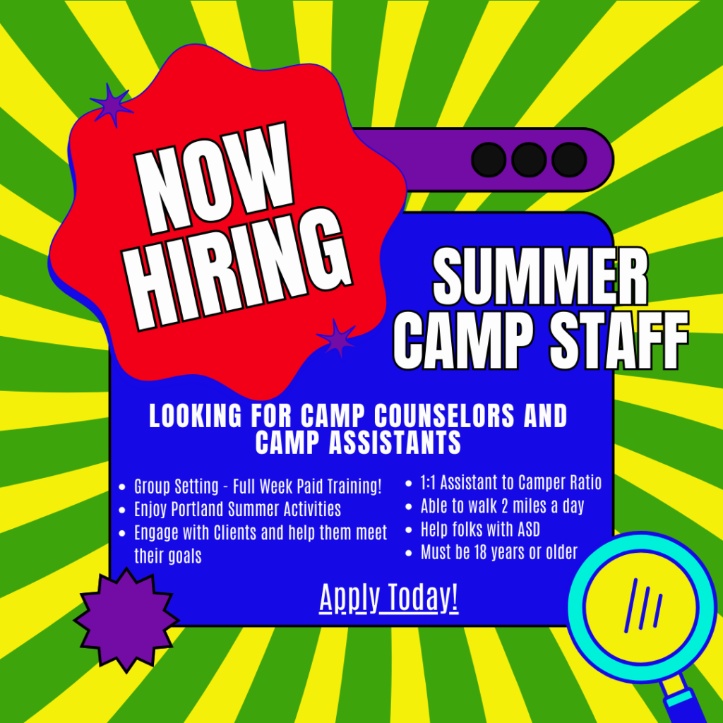 ACAP Summer Camp is a day camp program which combines a classroom routine with daily community activities. Our camp accepts kids as young as seven through 107 years of age. They must have a primary diagnosis of ASD in order to attend camp.